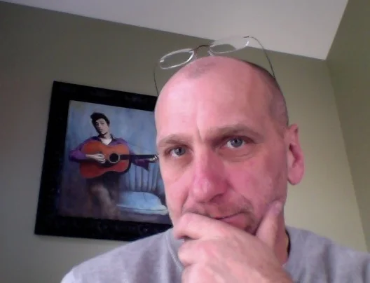 BOB DYLAN - BIG BLUE CHAIR / Oil on canvas / 24 x 24